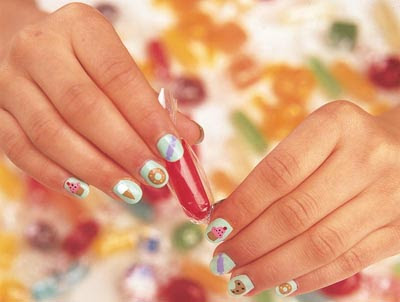 You can create some funky designs on the nails and the use of fimo canes to add more elegance to them. There are many unique designs in Fimo canes of art ranging from simple striped flowers and hearts of animals, wings of butterflies, bees, dragonflies, cat, cakes and more to delight with.
